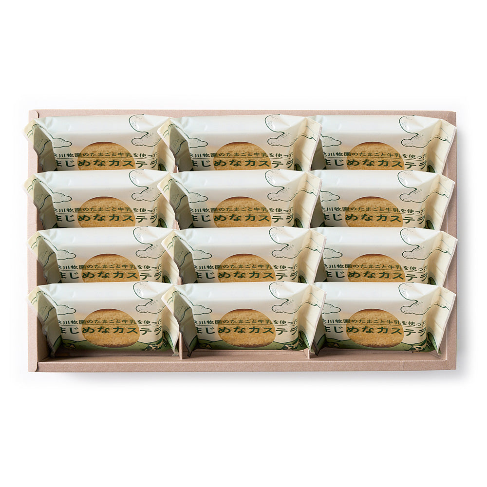 - セット内容:秋川牧園のたまごと牛乳を使ったまじめなカステラ×12個
