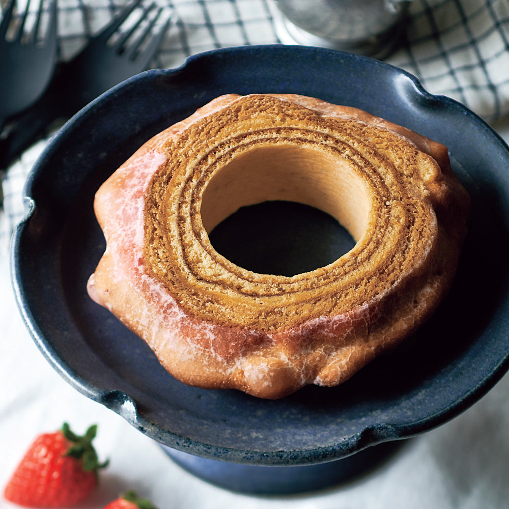 大自然で育った樹木のように何層にも芳醇なバターの香りを重ねて焼き上げました。素材はもちろん、食感にもこだわった食べごたえのあるバウムクーヘンです。ほのかに香るいちご味のフォンダンが絶妙なバランスです。