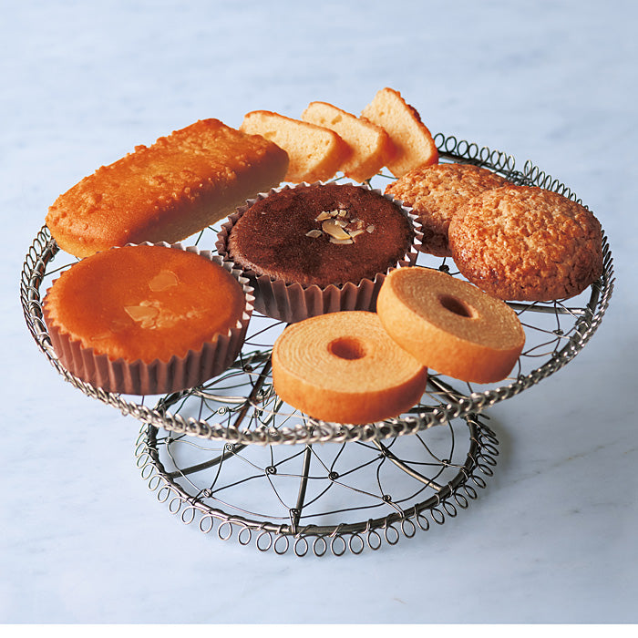- セット内容:オートミールクッキー×3枚、チーズスティック×2個、ミニバームクーヘン7個入×2袋、マドレーヌ(プレーン)・マドレーヌ(チョコ)×各2個