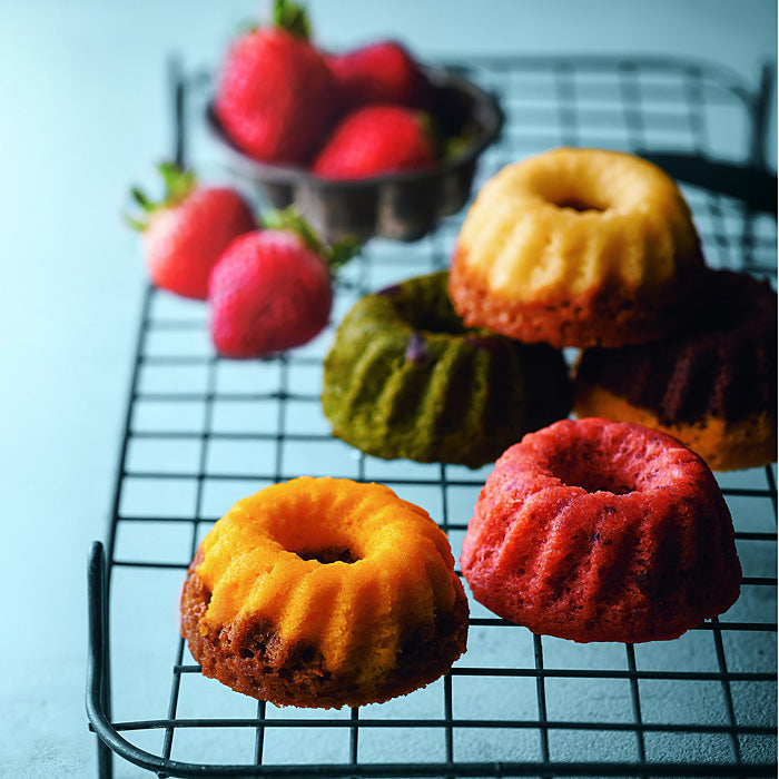 果実風味の生地に、フレーバーやつぶつぶ果実をプラス。ひと口で、ふたつおいしいかわいらしいクグロフです。練り込んだ蜂蜜やクリームチーズが、果物の爽やかさを引き立てます。