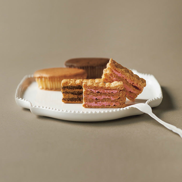 - セット内容:馬蹄パイ(キャラメル・シュガーバター)・ミルフイユ(フランボワーズ)×各3個、ミルフイユ(キャラメルラテ)・スフレ(芳醇フロマージュ・濃厚ショコラ)×各2個