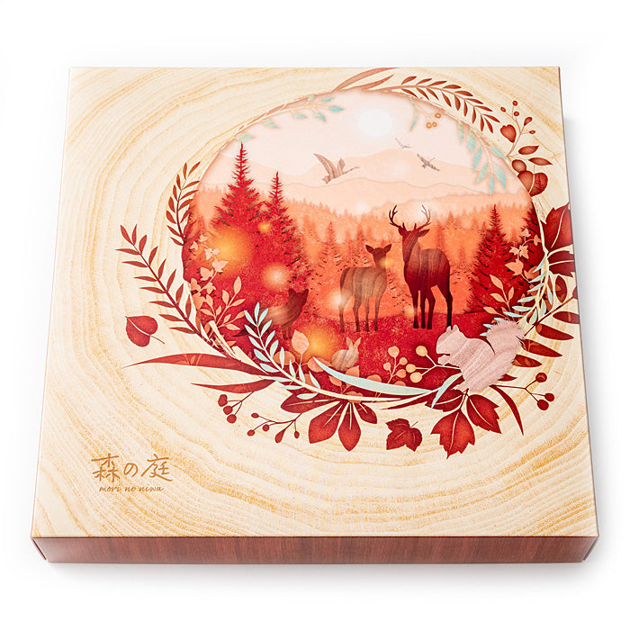 非日常の森の庭で素朴なお菓子を味わう『森の庭』シリーズ。しっとりバームクーヘンにカラメルソースをまとわせ、砂糖をかけてさらに焼き上げた「焦がしキャラメルがしみ込んだバーム」と、「しっとりバームクーヘン」の2種を詰め合わせました。ひと手間かけた味わいをお楽しみください。