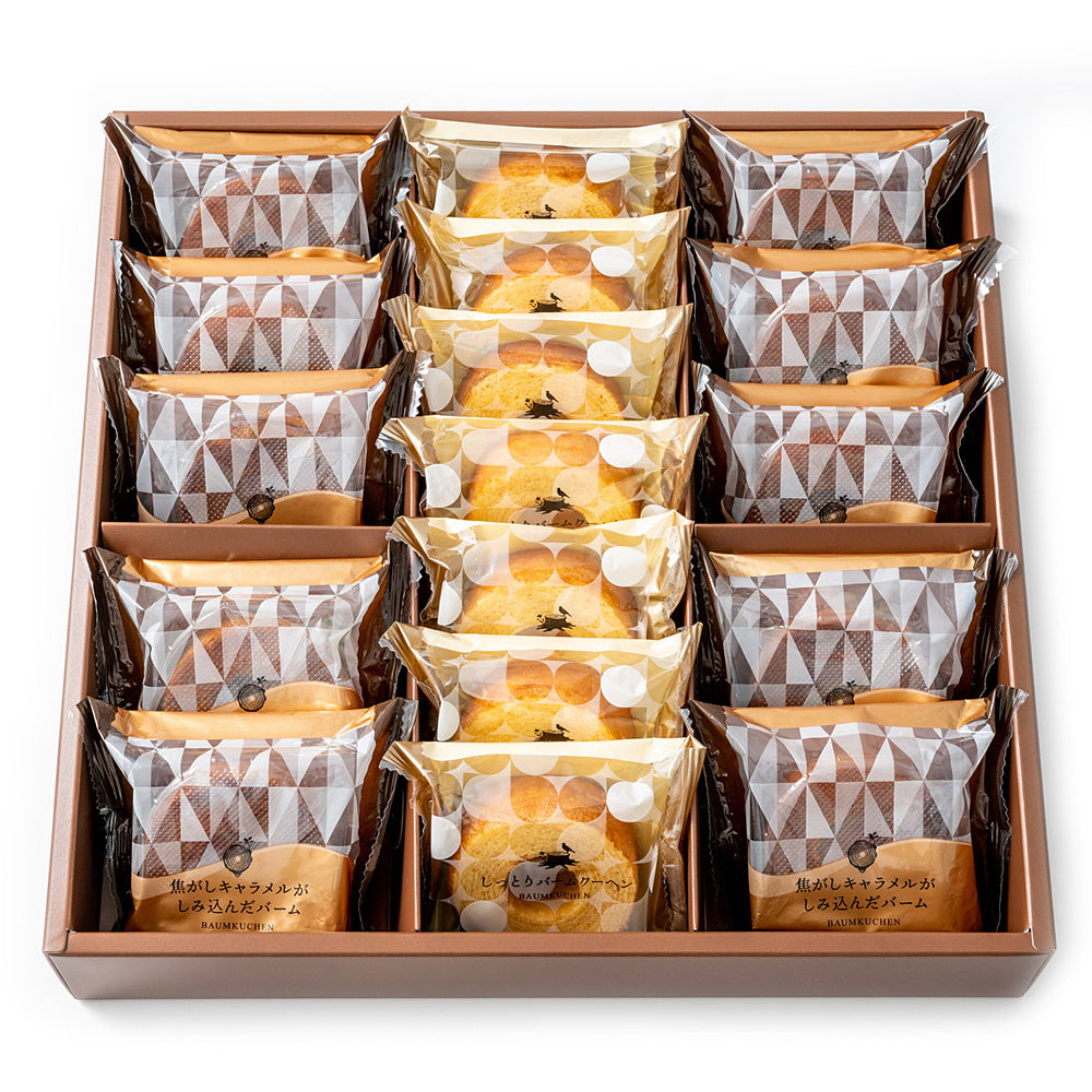- セット内容:焦がしキャラメルがしみ込んだバーム×10、しっとりバームクーヘン×7