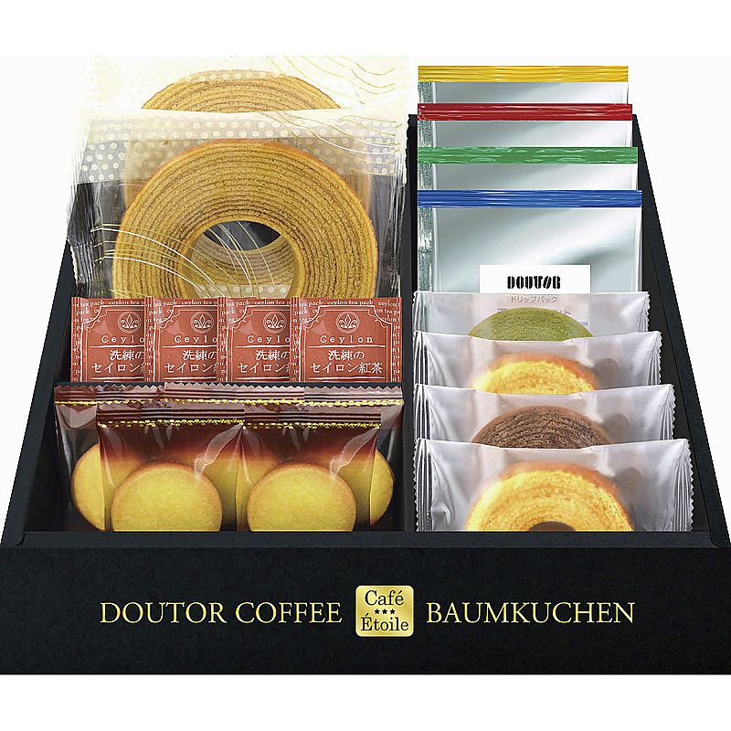 - 商品内容:セット内容/プレーンクッキー×5、セイロン紅茶ティーバッグ×4、ミルクバウムクーヘン・ミニバウムクーヘン(北海道生クリーム)×各2、ミニバウムクーヘン(ベルギーショコラ・宇治抹茶)・ドトールドリップコーヒー(深煎りブレンド・キリマンジャロブレンド・モカブレンド・アロマブレンド)×各1 箱サイズ/23×26×6.5cm 箱入重量/0.5kg 賞味期限/常温6ヶ月 アレルゲン/卵・乳・小麦