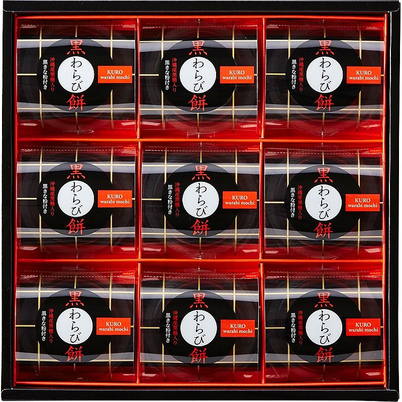 - 商品内容:セット内容/黒わらび餅(89g)・黒きな粉(3.5g)×各9 箱サイズ/26.3×25.9×4.8cm 賞味期限/常温6ヶ月