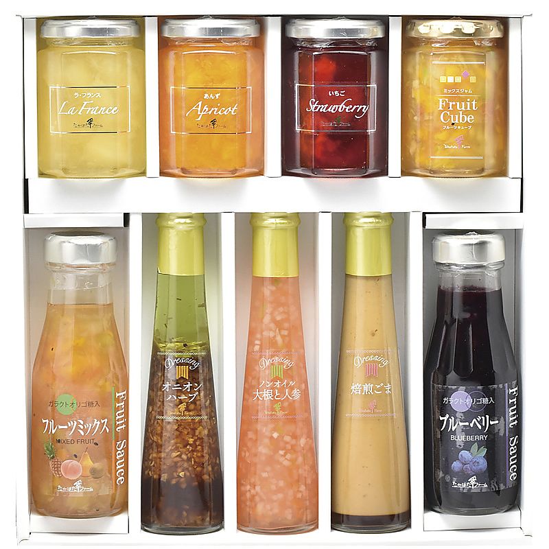 素材の持ち味を大切に仕上げたジャム、ドレッシング、フルーツソース、万能ソースの詰合せです。