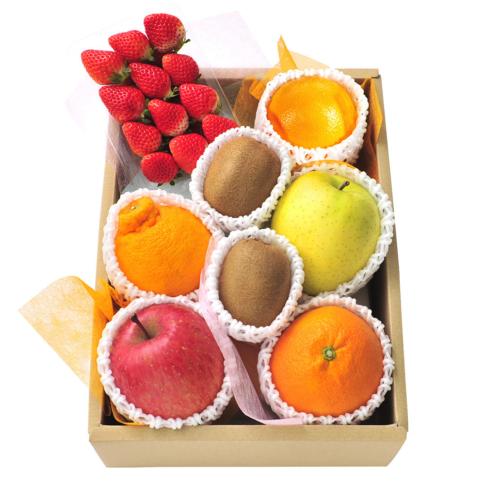 - セット内容:季節のフルーツ詰合せ ※写真の内容は一例です。ご注文の季節によって、お勧めの果物を一箱に詰めてお送りいたします。