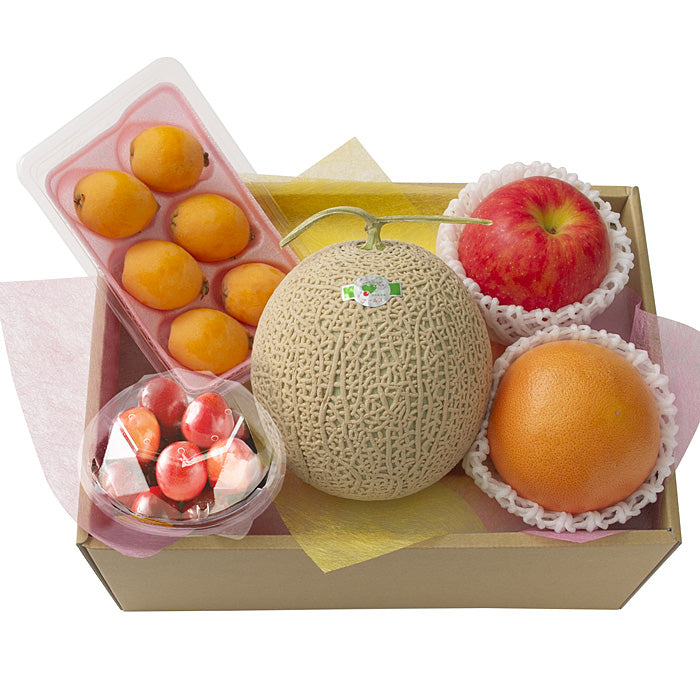 - セット内容:季節のフルーツ詰合せ ※写真の内容は一例です。ご注文の季節によって、お勧めの果物を一箱に詰めてお送りいたします。