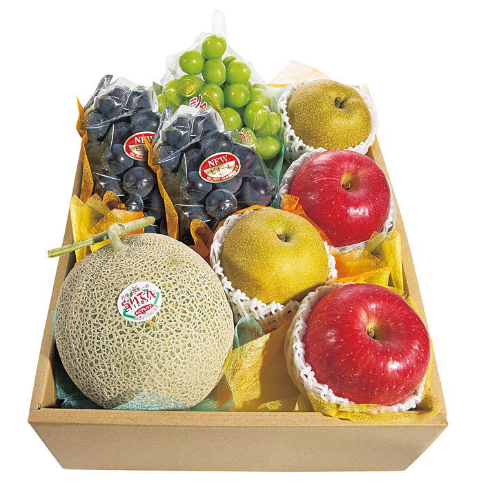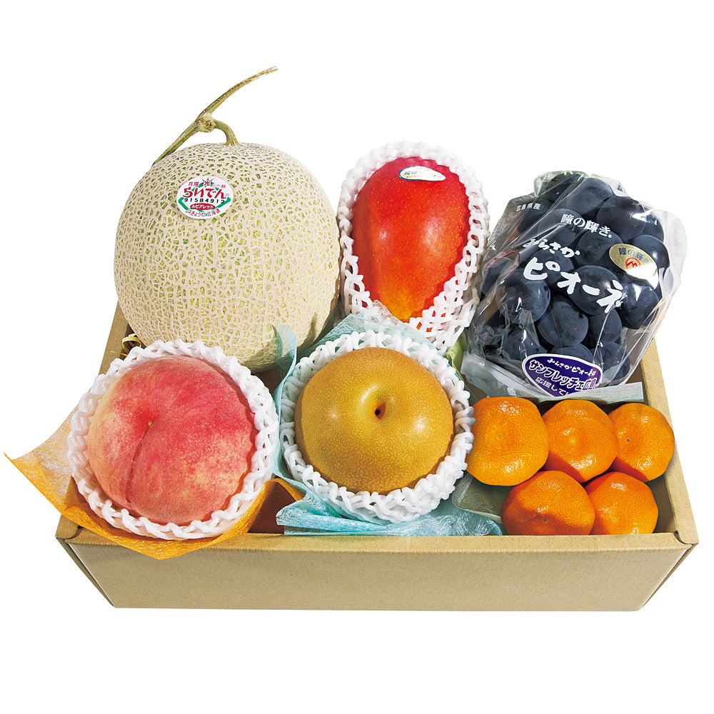 - セット内容:季節のフルーツ詰合せ ※写真の内容は一例です。ご注文の季節によって、お勧めの果物を一箱に詰めてお送りいたします。