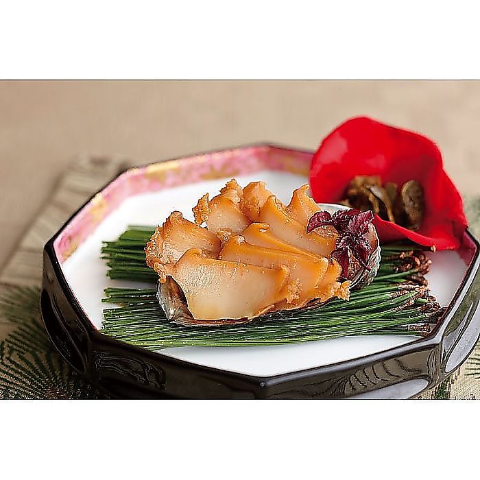 北海道産の蝦夷あわびを使用しています。真空調理で柔らか仕上げ、あわび本来のうまみをお楽しみ頂けます。あわびは昔から縁起の良い食品として扱われてきました。おめでたいお正月のおせちの一品として人気の高い商品です。