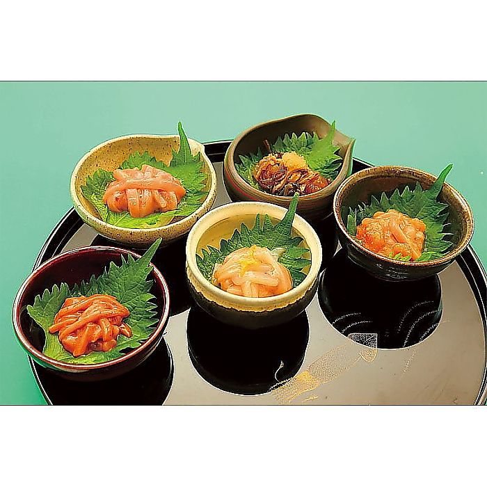 - 商品内容:朝いか塩辛・から~いジャン・数の子おふくろ・数の子松前漬・ゆず風味いかさし(各100g)×各1