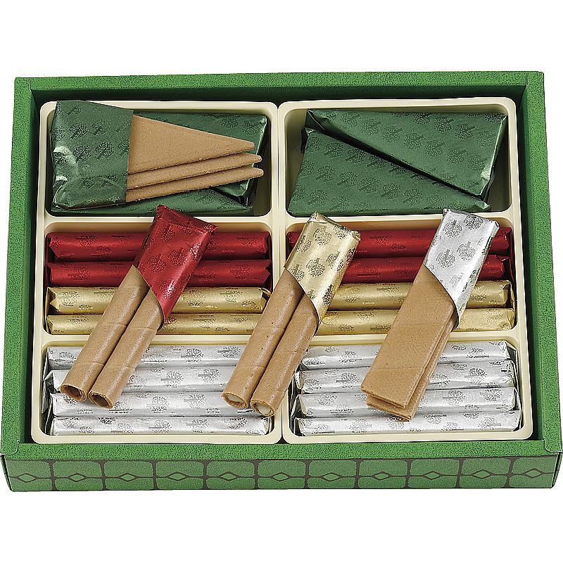 - 商品内容:セット内容/三角(3枚入)・短冊(2枚入)×各8、丸型(ミルクチョコ・ホワイトチョコ)(各2本入)×各4 箱サイズ/20.4×25×3.8cm 箱入重量/0.4kg 賞味期限/常温6ヶ月 アレルゲン/卵・乳・小麦