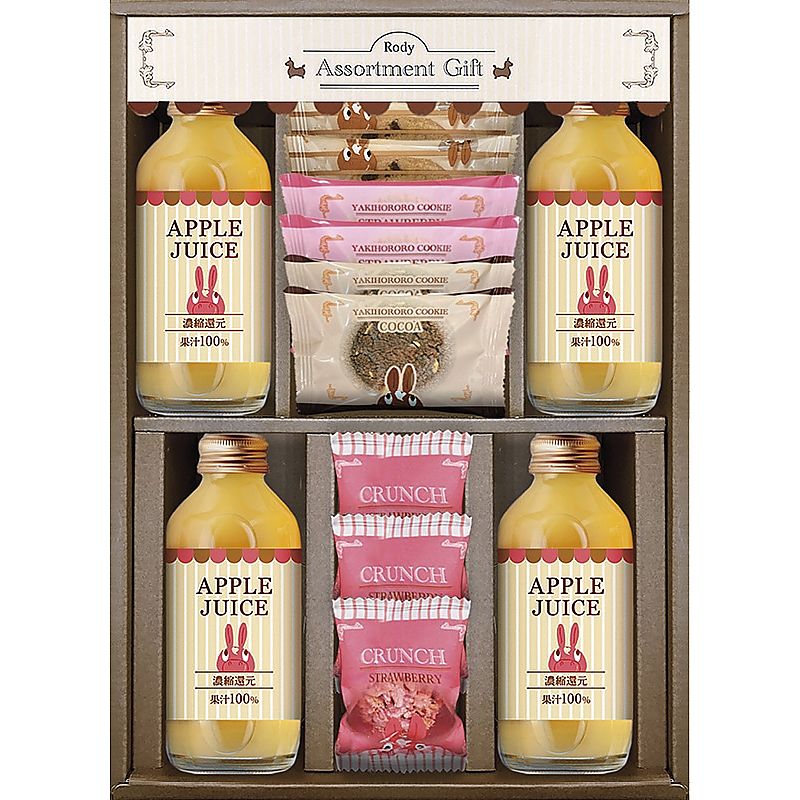 - 商品内容:セット内容/アップルジュース(180ml)×4、チョコクランチ(ストロベリー)×3、焼きほろろクッキー(ココア・ストロベリー)・ナッツとチョコのざっくりクッキー×各2 箱サイズ/32.5×23×6.5cm 箱入重量/1.8kg 賞味期限/常温6ヶ月 アレルゲン/卵・乳・小麦
