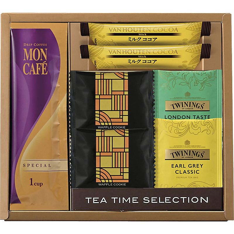 - 商品内容:セット内容/バンホーテン ミルクココア(18g)・クッキー・モンカフェ ドリップコーヒー スペシャルブレンド(7.5g)×各2、トワイニングティー(アールグレイクラシック・ロンドンテイスト)(各2.3g)×各1 箱サイズ/22.5×25.5×2.5cm 箱入重量/0.225kg 賞味期限/常温1年 アレルゲン/卵・乳・小麦