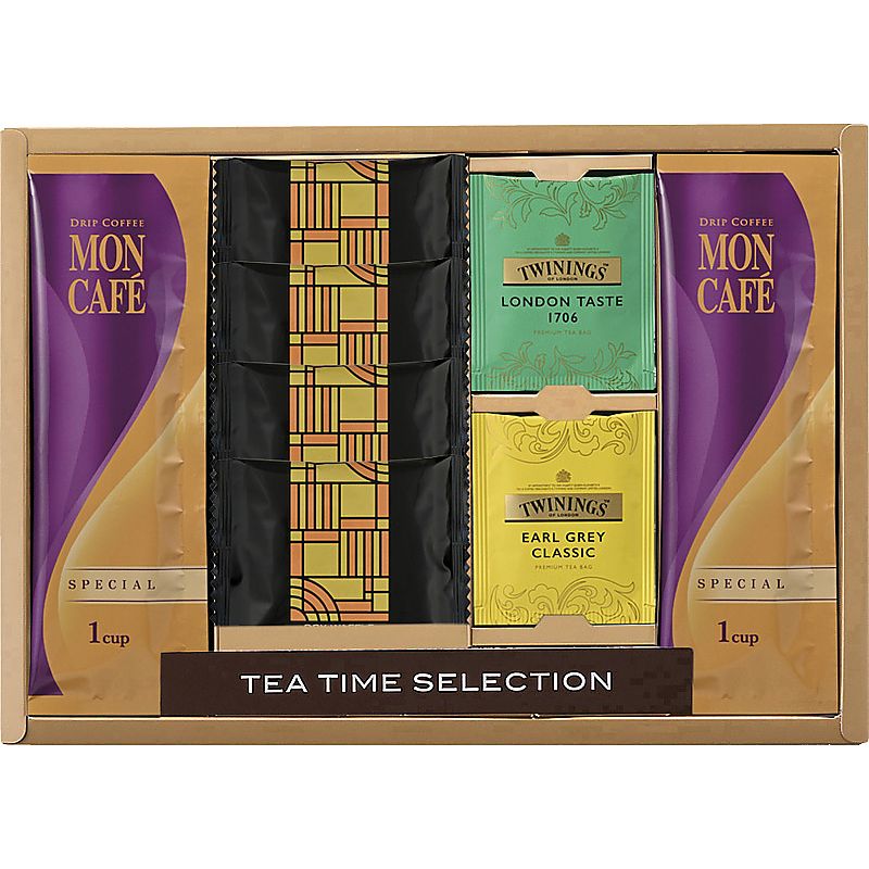 - 商品内容:セット内容/モンカフェ ドリップコーヒー スペシャルブレンド(7.5g)・クッキー×各4、トワイニングティー(アールグレイクラシック・ロンドンテイスト)(各2.3g)×各2 箱サイズ/22.5×31.5×3.5cm 箱入重量/0.3kg 賞味期限/常温1年 アレルゲン/卵・乳・小麦