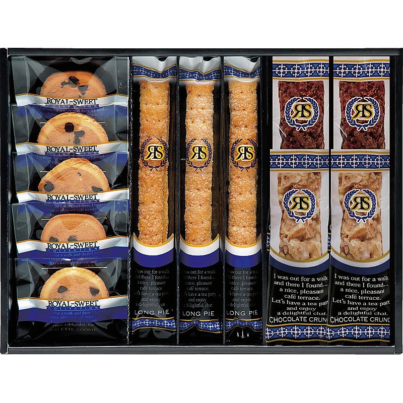 - 商品内容:セット内容/チョコチップクッキー×5、ロングスティックパイ×3、チョコクランチバー(ホワイト・ミルク)×各2 箱サイズ/23.5×29×4cm 箱入重量/.3 賞味期限/6ヶ月 アレルゲン/卵・乳・小麦 補足/※商品のデザイン・内容等が変更になる場合がございます。