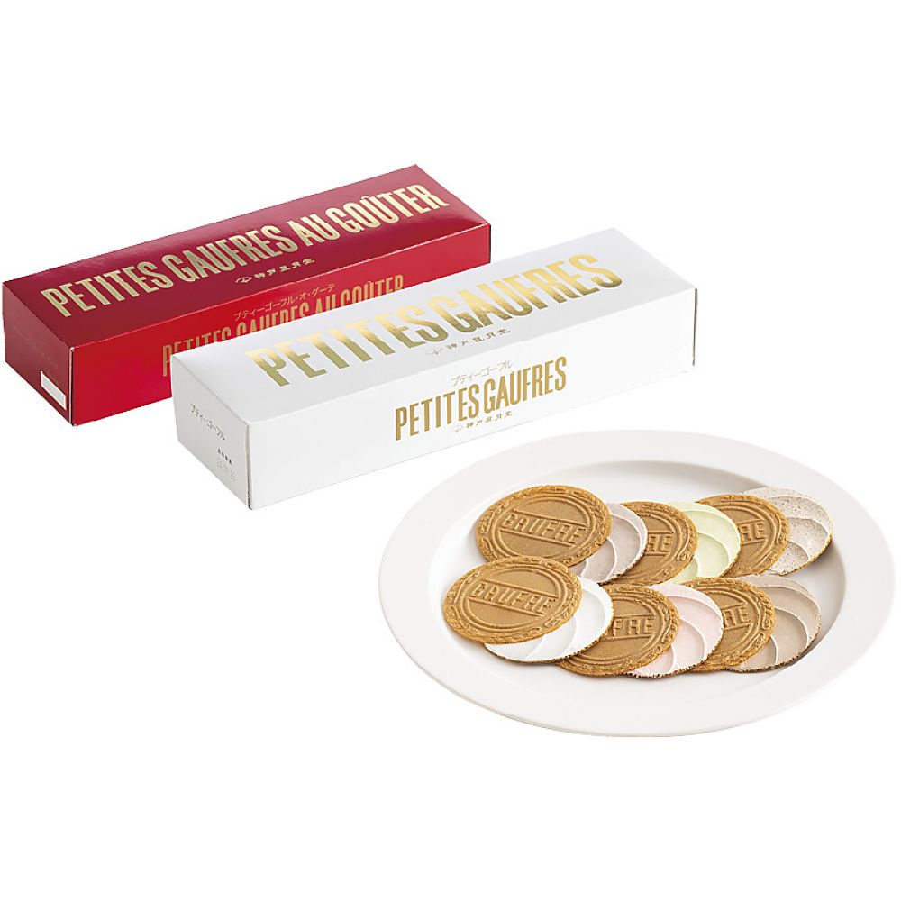バニラ、ストロベリー風味、チョコレートのクリームをサンドしたプティ―ゴーフルと紅茶、抹茶、コーヒーのクリームをサンドしたプティ―ゴーフル・オ・グーテのセットです。