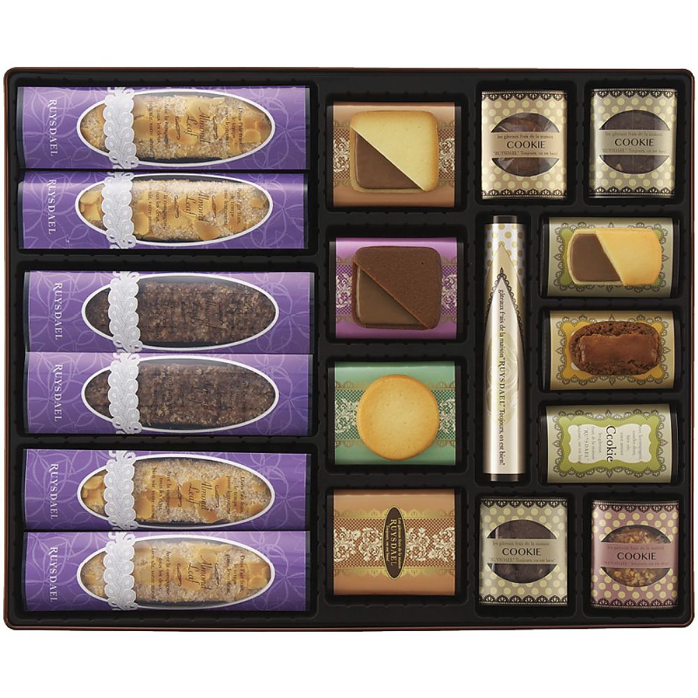 - 商品内容:セット内容/クッキー×50(9種)、アマンドリーフ×14、ショコラリーフ×7 箱サイズ/29.5×36.5×5.5cm 箱入重量/1.3kg 賞味期限/常温3ヶ月 アレルゲン/卵・乳・小麦