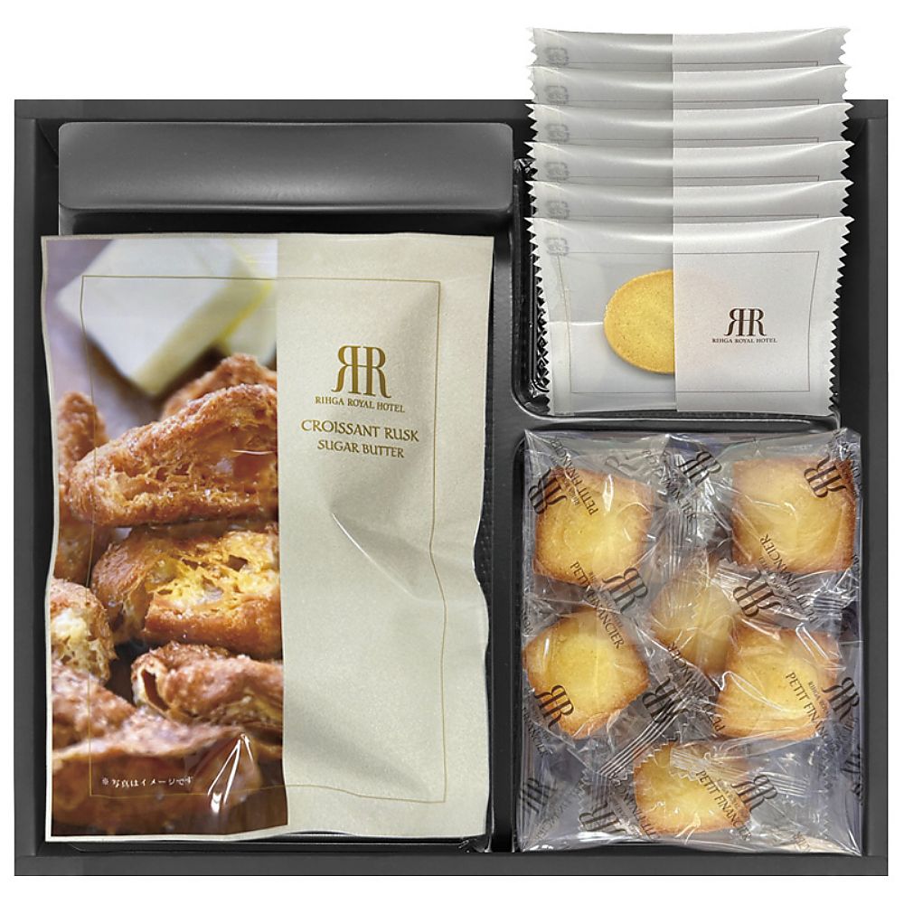 - 商品内容:セット内容/クッキー(プレーンバニラ・チョコチップ)×各3、クロワッサンラスク(シュガーバター風味)・プチフィナンシェ(プレーン)(6個入)×各1 箱サイズ/22×24.5×6cm 箱入重量/0.315kg 賞味期限/常温3ヶ月 アレルゲン/卵・乳・小麦