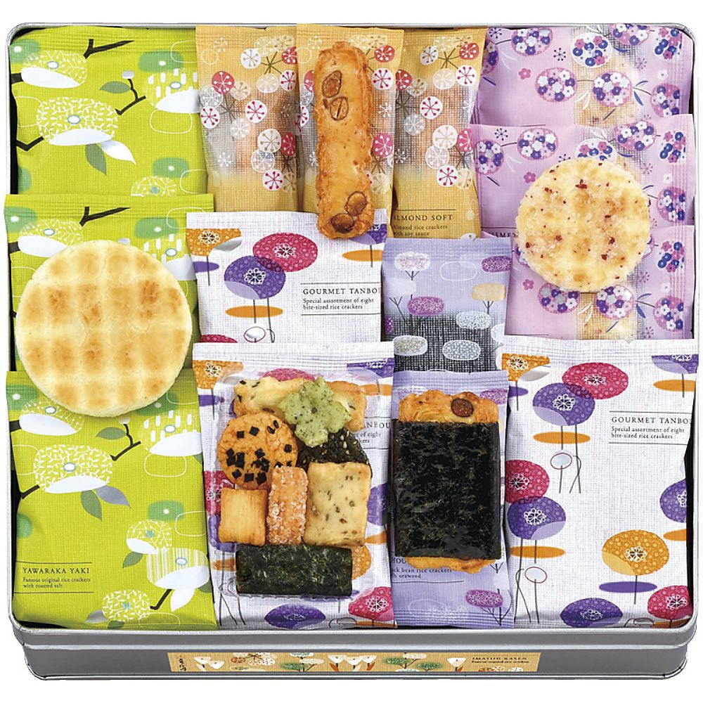 - 商品内容:セット内容/姫てまり梅ざらめ×9、アーモンドそふと直火炊き醤油×8、やわらか焼やき塩・兆福餅のり巻×各6、ぐるめ探訪×4 箱サイズ/27.9×31.5×6.4cm 箱入重量/1kg 賞味期限/常温4ヶ月 アレルゲン/乳・小麦 備考/包装済