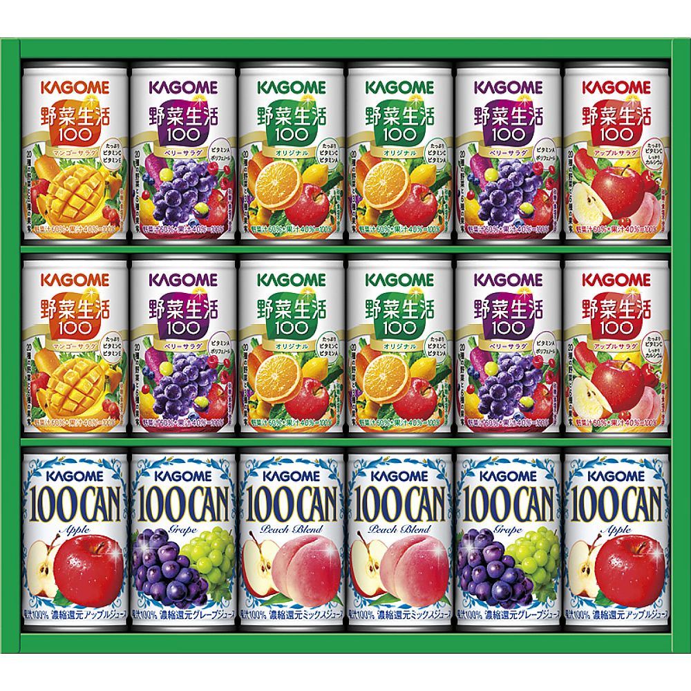 野菜&フルーツの美味しさが人気の「野菜生活100」と、100%フルーツジュースのベストセラー「KAGOME 100CAN」の詰合せ