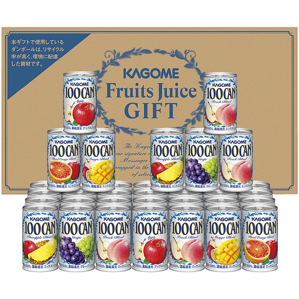 果実のおいしさが活きている100%フルーツジュースのベストセラー「KAGOME 100CAN」の詰め合わせ。