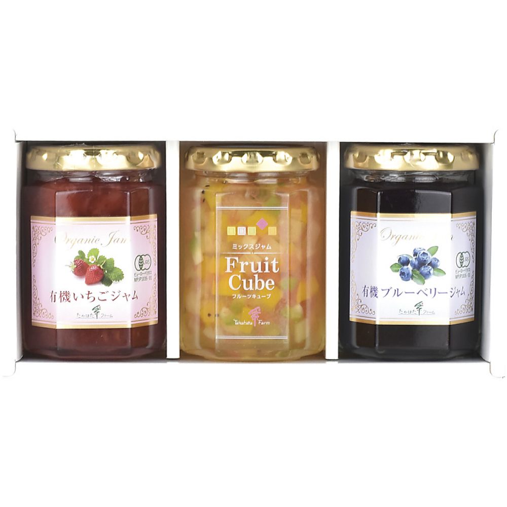- 商品内容:セット内容/ミックスジャム(フルーツキューブ)(155g)・オーガニックジャム(有機いちご・有機ブルーベリー)(各145g)×各1 箱サイズ/12×22×6cm 箱入重量/1kg 賞味期限/常温10ヶ月