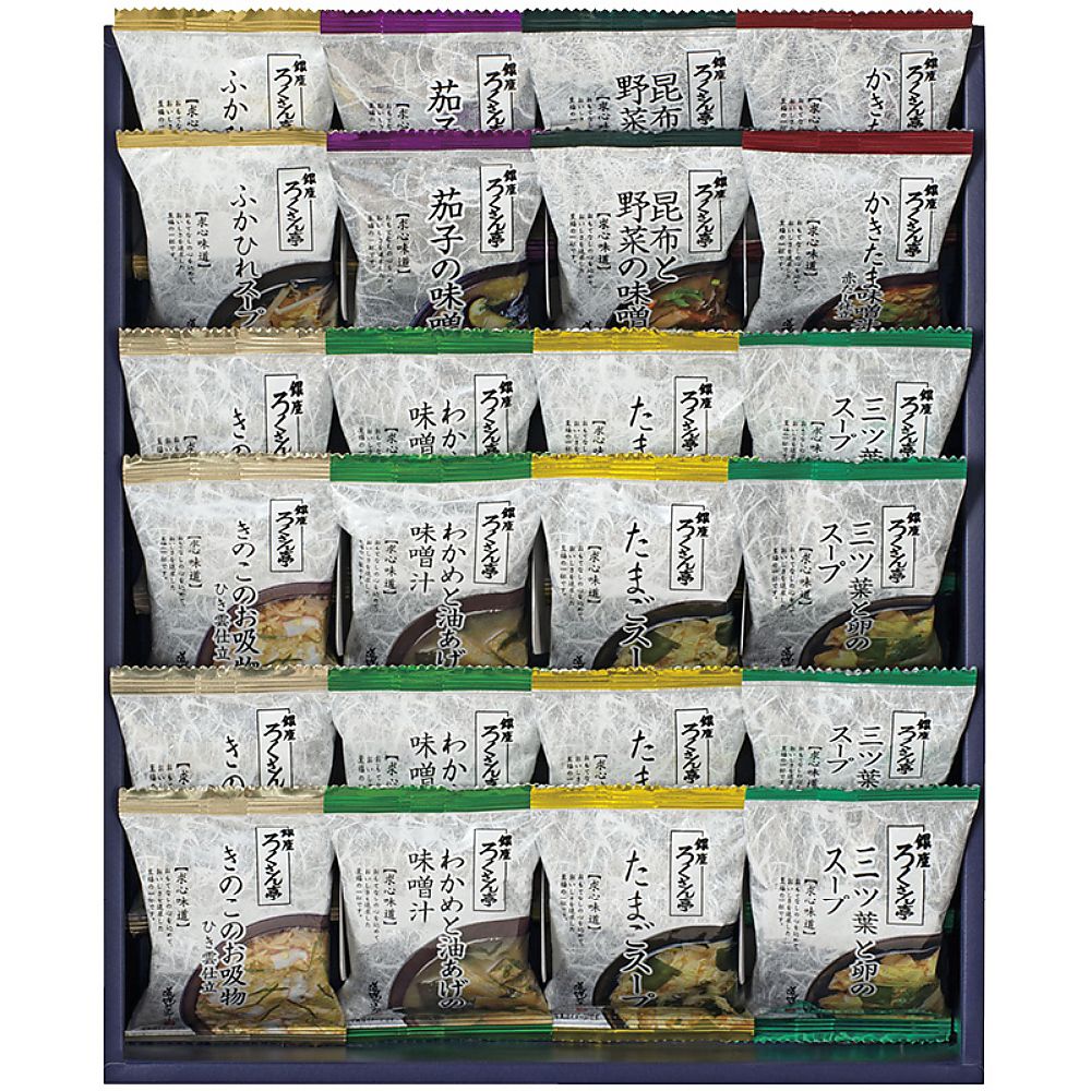 - 商品内容:セット内容/三ツ葉と卵のスープ・たまごスープ・きのこのお吸物ひき雲仕立・わかめと油あげの味噌汁×各4、かきたま味噌汁赤だし仕立・ふかひれスープ・昆布と野菜の味噌汁・茄子の味噌汁×各2 箱サイズ/33.3×27.8×5.5cm 箱入重量/0.5kg 賞味期限/常温1年 アレルゲン/卵・乳・小麦