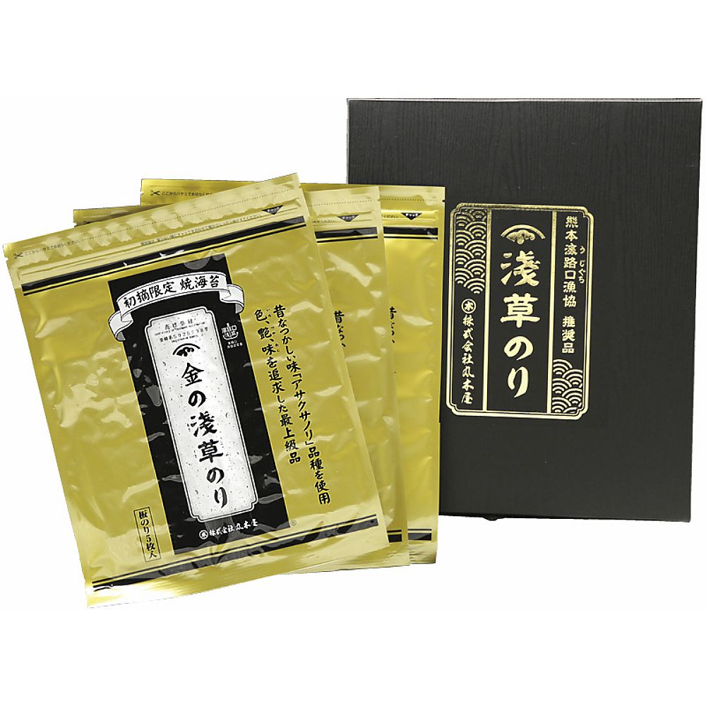 - 商品内容:セット内容/金の浅草のり(全形5枚)×3 箱サイズ/30×25.5×3.5cm 箱入重量/0.289kg 賞味期限/常温1年6ヶ月