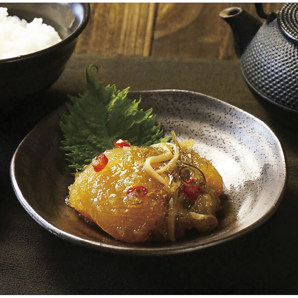 醤油ベースの調味液に昆布とするめの美味しさが溶け出し、大ぶりの数の子によく絡み合います。おせち料理、お酒の肴に、ご飯のお供としておすすめです。