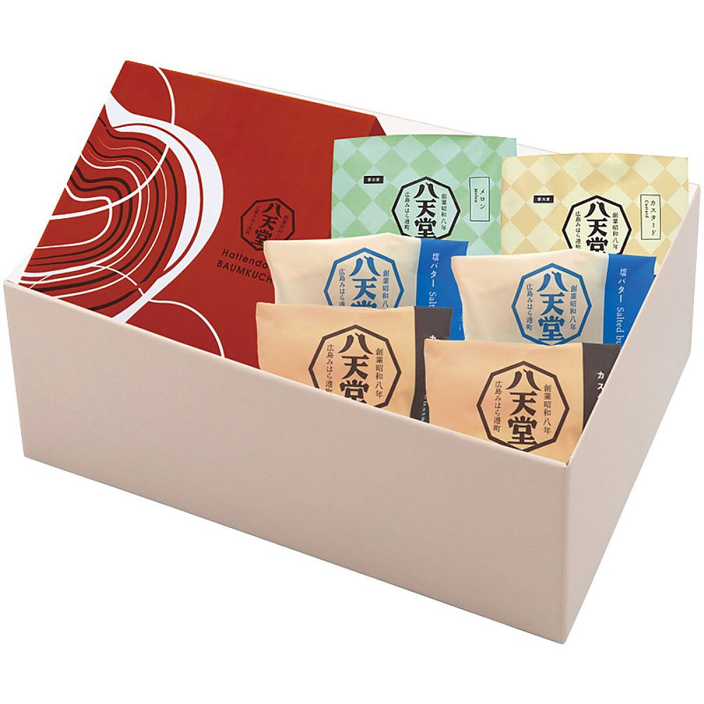 くりーむパンは何度食べても はっ とする、とろける食感。塩バターくりーむパンはバターの風味と国産の塩の程よい塩気、クリームの優しい甘さが食欲をそそります。くりーむメロンパンは、メロンパンのサクッとした食感とクリームのやさしい味わいをお楽しみいただけます。バームクーヘンは可愛らしい「ハート形」で、八天堂のくりーむパンを連想させる、優しいカスタードの味わいをお楽しみいただけます。